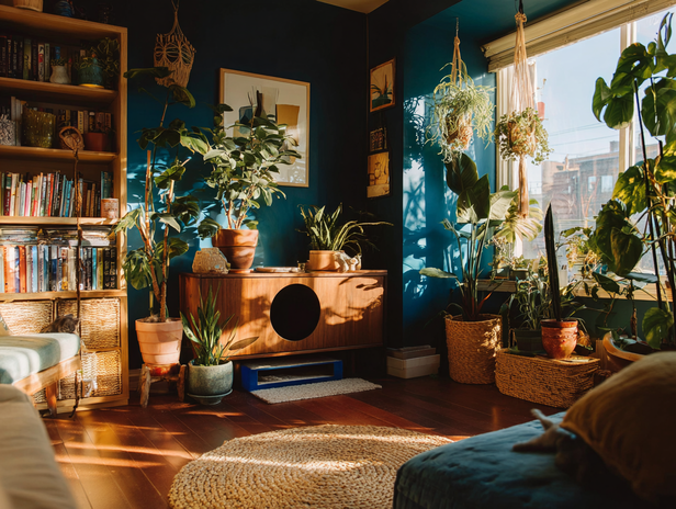If you’re a plant parent, tuck the litter box behind a cluster of tall, leafy plants. Think Boston ferns, bamboo palm or even a faux tree. Just make sure your cat has an easy entry path, and keep the plants kitty-safe.